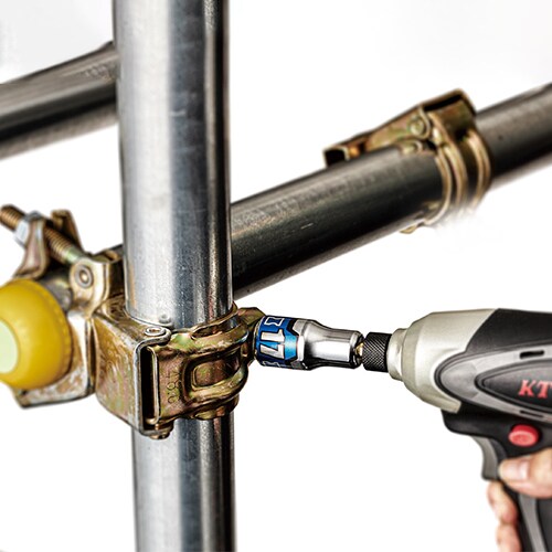 高所作業も安心。落下防止機能付き電ドルソケット。ビット破損時もスムーズ脱着。18V対応、軽量ショートで作業効率向上。 |