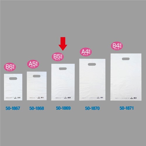 ササガワ カラーポリ 半透明 220×350 B5用 50P 50−1869 ビニール袋・ポリ袋 1包(50枚入) 7831-4221