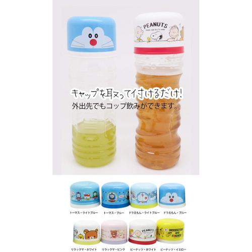 【3個以上から注文可能な商品です(表示売価は1個あたりの売価)】ペットボトルのキャップの代わりに取り付けられるコップのセット。外出先でもコップで飲み物を楽しめます。