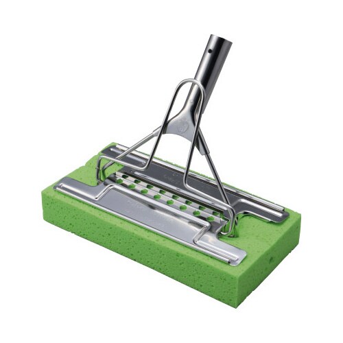 絞り機能付きの水拭き用スポンジワイパー。手を濡らさずに床やタイル壁面、ガラスの水拭きが行えます。低い天井や窓ガラス、床面の拭き掃除に適しています。 |