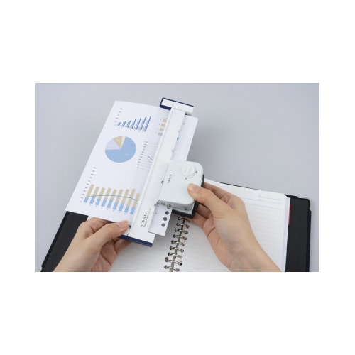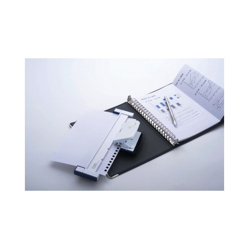 ルーズリーフがつくれるパンチです。ゲージのガイドに合わせてパンチを繰り返すことで手軽に「A5サイズ20穴」の多穴に対応。既製の用紙をバインダーノートに綴じることができます。 |