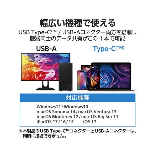パソコン・スマートフォン・タブレットなど異なるデバイス間のデータ移動もこれ1つ。Type−C/USB−A両方のコネクターを搭載したUSBメモリ。USB5Gbps(USB3.2(Gen1))対応。 |