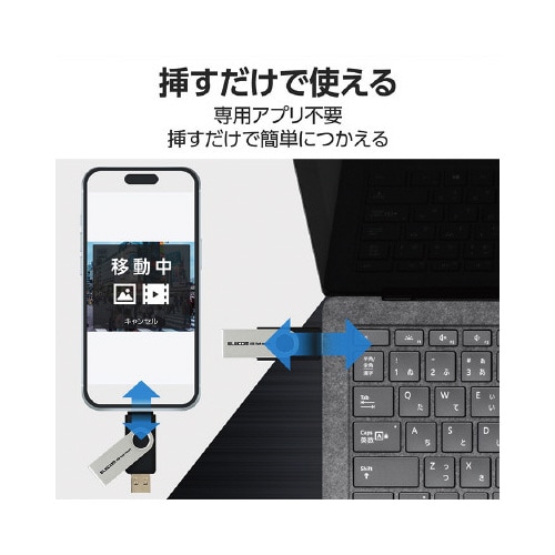 パソコン・スマートフォン・タブレットなど異なるデバイス間のデータ移動もこれ1つ。Type−C/USB−A両方のコネクターを搭載したUSBメモリ。USB5Gbps(USB3.2(Gen1))対応。 |