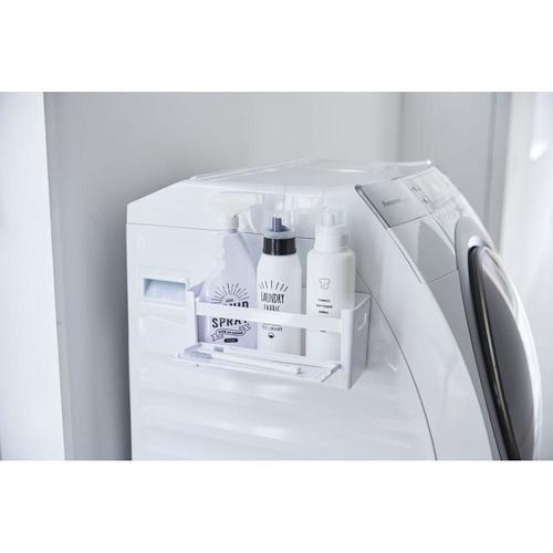 洗う時は開閉式トレイを広げてフタやキャップの水切りとしても。ボトル倒れを防ぐバーや底は水切りしやすいスリット状。乾けば開閉式トレイを閉めてそのまま収納。マグネットシートで貼り付けて使用することも可能。 |