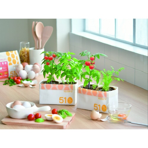 環境にやさしいプランターで2種類の植物を育てます。 |