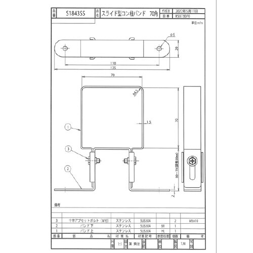 SUS304製。水栓角柱、角パイプ用ステンレス製サドルバンド。 |