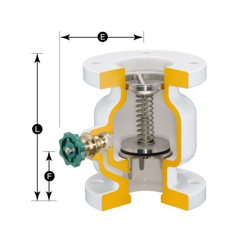 ■FC製■ナイロンコーティング■フランジ式■スモレンスキチャッキバルブ■流体温度:0℃ー60℃■使用圧力:0.98MPa以下■ウォーターハンマ現象を起こしません。■縦・横配管に取り付けが出来ます。 |