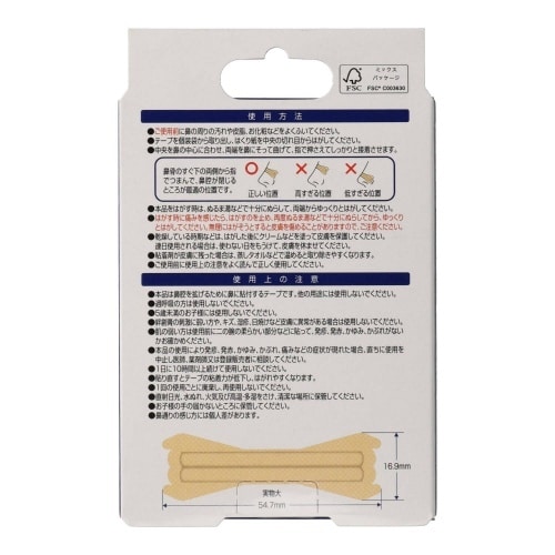 効果を高めるため両端にリリーフカット(切れ目)を入れ、しっかり固定。スポーツや就寝時の鼻呼吸が楽になる。個包装で持ち運びに便利で衛生的。 |
