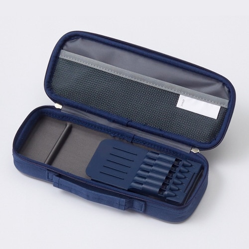軽くて使いやすいペンケース。太さの違う鉛筆も並べて差し込めるサイズ調整機能付きペンホルダー。着脱式のペンホルダーで長く使えます。外側ポケット、蓋裏メッシュポケット付きで収納しやすい仕様です。 |