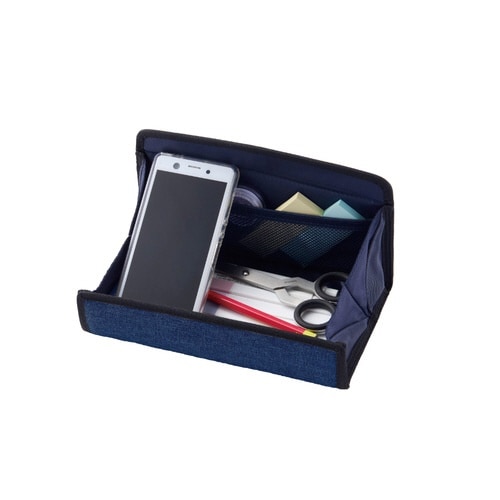 マグネット仕様のため、片手でも簡単に開閉できるペンケース。ペントレイのように大きく開いて中身が見やすく、出し入れしやすい仕様です。フタ部分が大きく開くため、スマホを立てかけることも可能です。 |