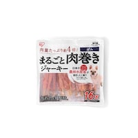 ガムを厚みのあるささみで巻いた、まるごと肉巻きジャーキーです。農林水産省より指定加熱処理施設として認定された工場で製造し、品質にこだわったジャーキーです。 |