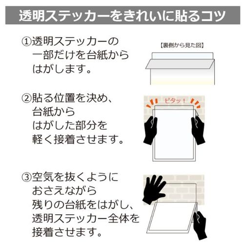 サイズ:138×194mm | 材質:透明塩ビフィルム(強粘再はくり) | 重量:25g | 厚さ:[ステッカー]0.09mm | 単位:1パック(2…