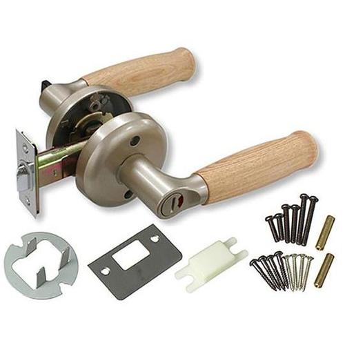 木目積層材のレバーハンドル。円筒状、握り玉からの簡単取替が可能 |