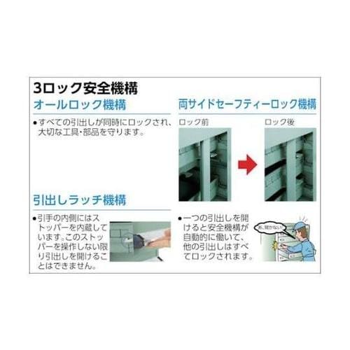 セーフティロック機構付のため引き出しを1段開けていると安全機構が働き、他の引き出しは全てロックされ開きません。 |