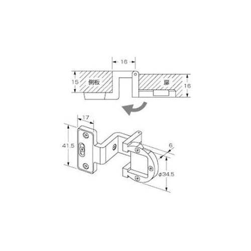 扉を大きく開くことができるアングル型の蝶番です。 |