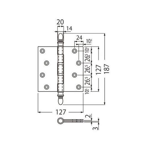 シロクマ BS−101丁番127×127金 BS−101 建築蝶番/丁番/ヒンジ 1個 8001-7523