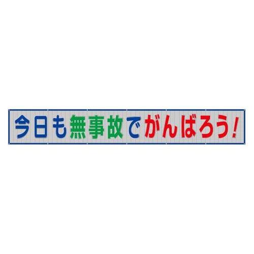 材質:メッシュ地/ポリエステル、青枠/ターポリン | サイズ:800×5400mm | 標識:今日も無事故でがんばろう | 単位:1個