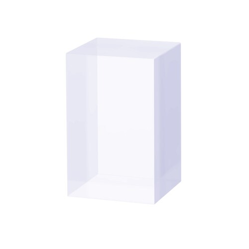 50mm角(高さのみ80mm)のシンプルな形のアクリルブロックです。透明なので邪魔をせず、高級感が演出できるしっかりしたブロックです。 |