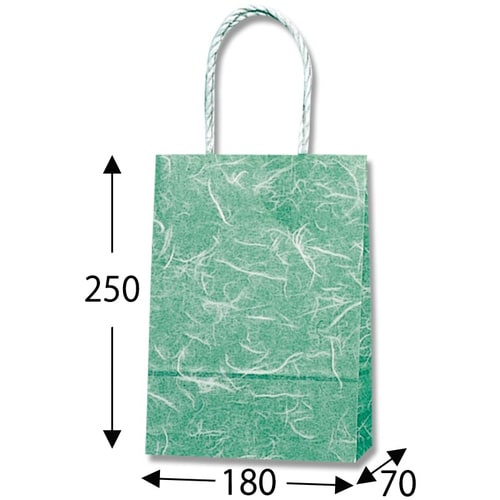 樹脂製の接着剤で手紐を取り付けた手提げ紙袋です。紐の結び目がなくすっきりし、物の出し入れがスムースで、ストックする際にかさばらないメリットがあります。 |