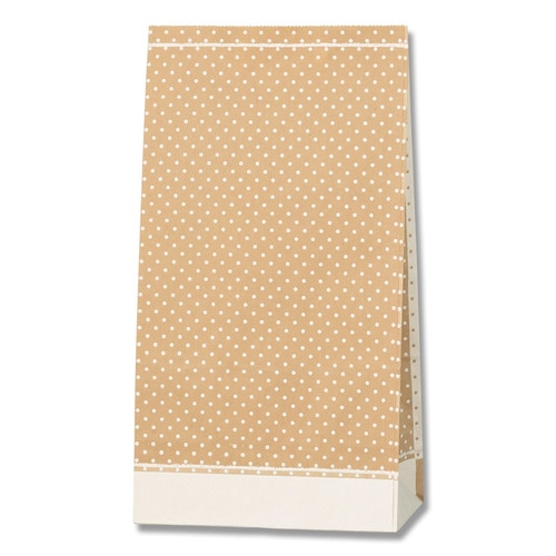 シンプルで使いやすい水玉模様のファンシーバックよりもマチ幅の広い定番の角底袋です。表裏柄違いになっていますので色々な業種でご利用頂けます。 |
