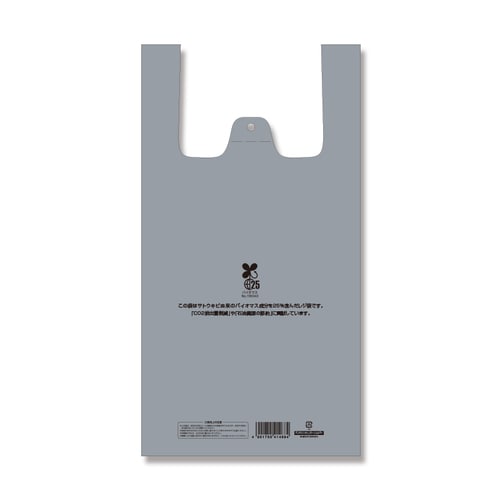 生物由来の有機資源を原料としたバイオマス成分を25%含んだレジ袋です。中身が透けにくいシルバー色。バイオマスマーク取得済みで、「プラスチック製買物袋有料化制度」の対象外とすることが可能です。 |
