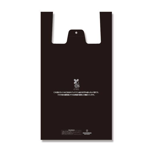 生物由来の有機資源を原料としたバイオマス成分を25%含んだレジ袋です。中身が透けにくい黒色。 |