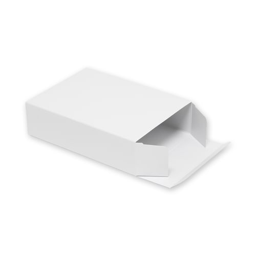 汎用性の高い白無地の組立箱です。フタと本体が一体となっており、底面は四方を折り込み、反対側のベロとフタを閉じて仕上げるタイプです。