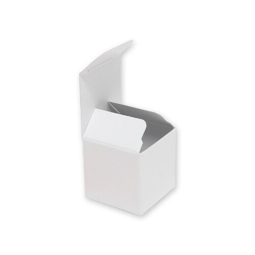 汎用性の高い白無地の組立箱です。フタと本体が一体となっており、底面は四方を組込み、反対側のベロとフタを閉じて仕上げるタイプです。縦・横・高さが全て同じサイズのサイコロ型の規格です。 |