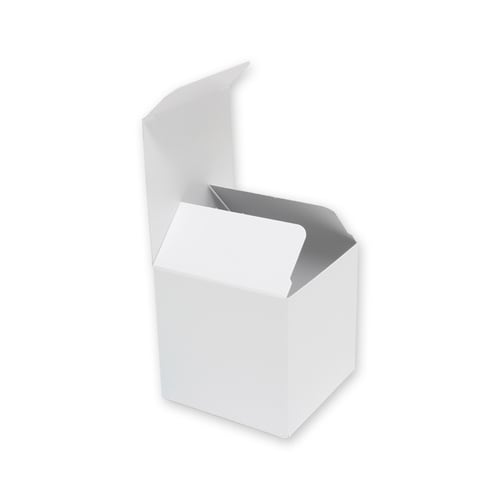 汎用性の高い白無地の組立箱です。フタと本体が一体となっており、底面は四方を組込み、反対側のベロとフタを閉じて仕上げるタイプです。縦・横・高さが全て同じサイズのサイコロ型の規格です。 |
