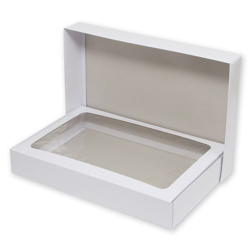 材質:フタ:白板紙450g(裏面鼠色)+表面光沢加工/身:白板紙450g(裏面鼠色) | 仕様:フタは表面に光沢を持たせ、中枠は透明フィルムが貼ってあ…