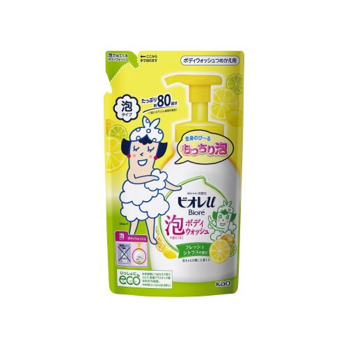 キメ細かい、もっちり泡が長続き。全身すみずみまで洗える。さわやか気分フレッシュシトラスの香り。