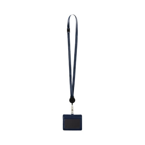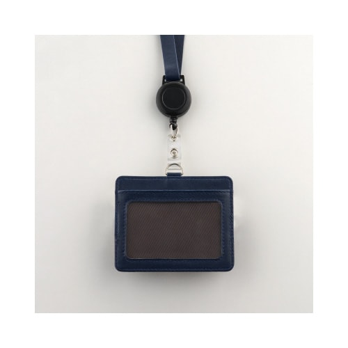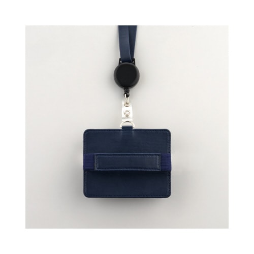 持ちやすいバンド付きIDカードホルダー ネイビー リール付ストラップ付