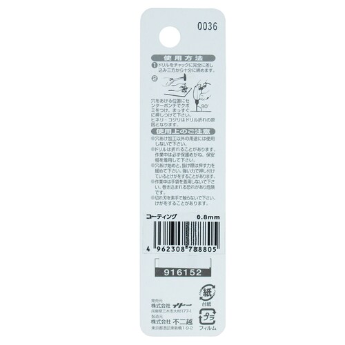 イトー コーティングドリル1本入 0.8mm #078880 1個 8020-3599