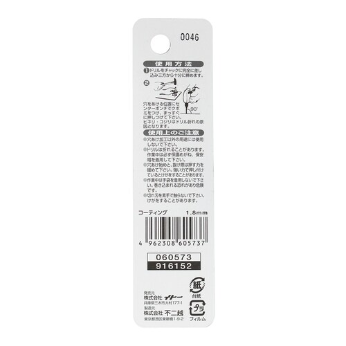 イトー コーティングドリル1本入 1.8mm #060573 1個 8020-3698