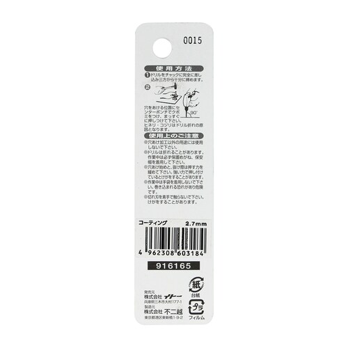イトー コーティングドリル1本入 2.7mm #060318 1個 8020-3858