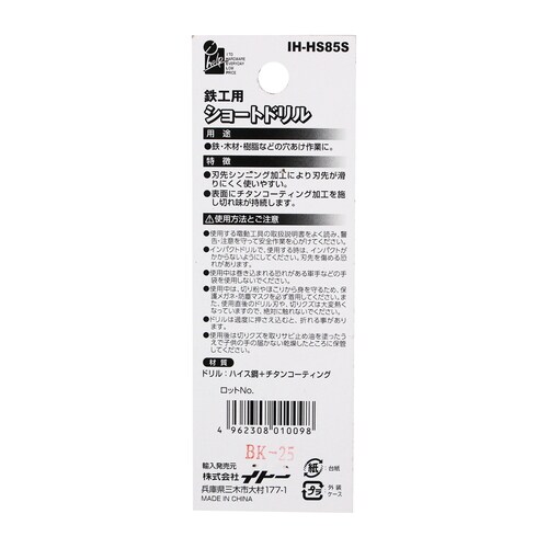 イトー ショートドリル鉄工用 8.5mm IH−HS85S IH−HS85S 1個 8021-8883