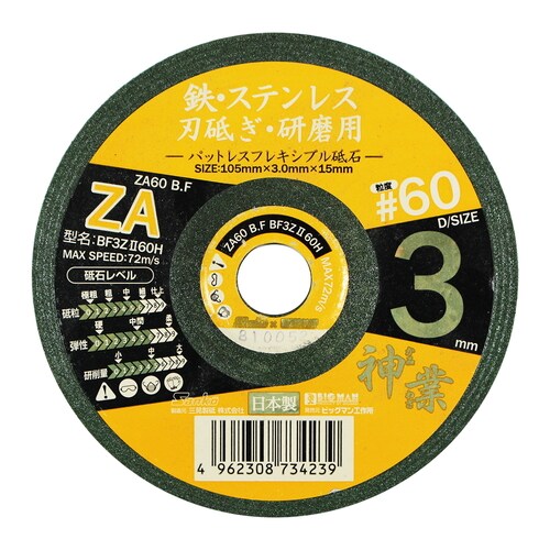 パットレスフレキ砥石 神業 鉄・ステン刃物用 #60 3750914 1個