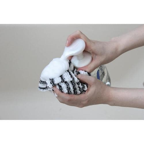 泡タイプのボディソープと相性がよく、泡がよく絡んでモコモコの泡を作ることができます。液体のボディソープや石鹸でもよく泡立ちます。タオルが伸びるので背中など手が届きにくいところまでしっかりと洗えます。 |