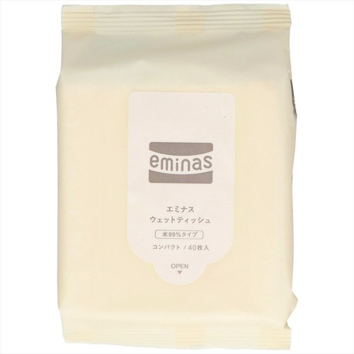 「エミナスウェットティッシュコンパクトノンアルコールプレーン」は家庭や外で幅広いシーンで使えるノンアルコールウェットティッシュです。上品なマット調フィルムのパッケージで、さっと拭けるレギュラータイプ。 |