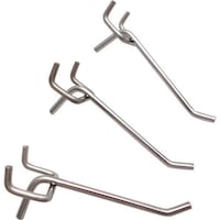 ステンレス製でサビを防ぎます。穴あきボードに取り付けることができるT型の専用フックです。 |