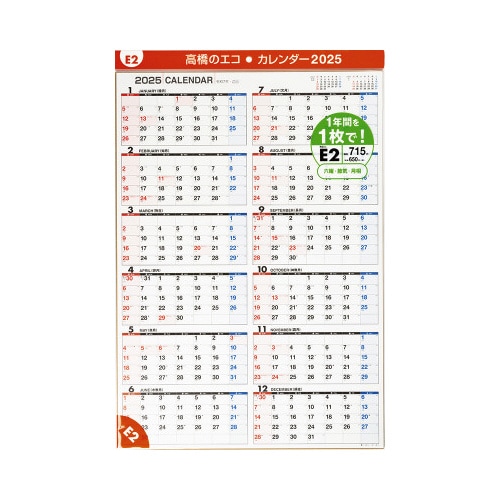 【2025年版】E2エコカレンダー壁掛A2 E2 カレンダー(壁掛け) 1冊