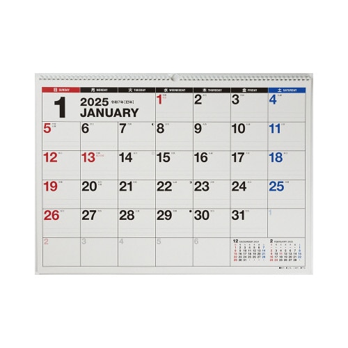 記入スペースたっぷりの大きなカレンダー。日付が大きく、遠くからでも見やすいデザインです。オフィス、店舗、公共施設など場所を選ばずご使用いただけます。 |