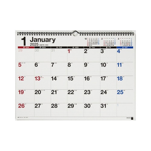 シンプルで、どんな場所にもなじむデザインです。右上には前月・次月・次々月のミニカレンダー付き。オフィス、店舗、公共施設など場所を選ばずご使用いただけます。 |