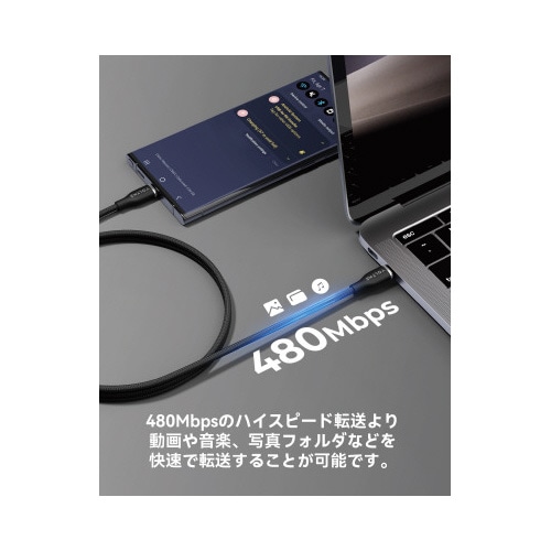 USBCtoUSBC100W1M、USB2.0TypeC充電ケーブル。MacBookPro2020、iPadPro2020、iPadAir、SamsungS22Ultra、Switchを急速充電可能。 |