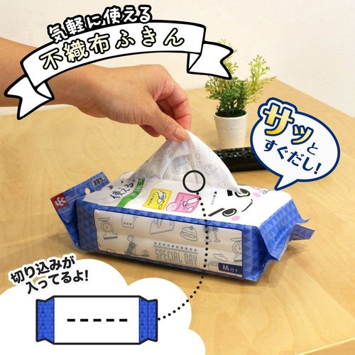 気になる汚れにサッと使えて、汚れたら気軽に交換できる、手のひらサイズの不織布ふきんです。落ち着いたカラー、シンプルでかわいいプリント柄付き。たっぷり使える60枚入大容量です。 |