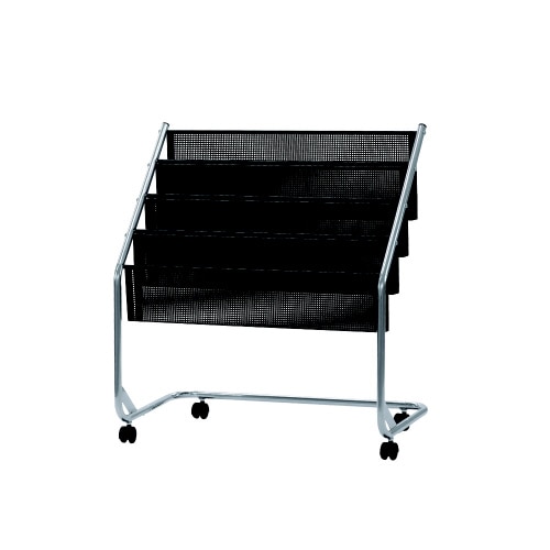 キャスター付きで幅広タイプ のシンプルなマガジンラックです。ブラックのパンチングスチールとクロムメッキフレームのコントラストが高級感を醸し出します。 |
