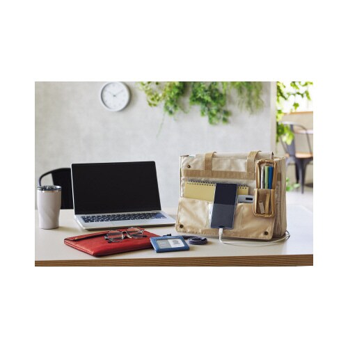 オンオフどちらにも使えるカラーリングのMutualシリーズ。バッグなどに引っ掛けられるクリップ付き。マグネットでフタがピタッととまります。フタ裏には付箋やUSBメモリが入るメッシュポケット付き。 |