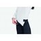 ジャストウエスト、両脇斜めポケット、左脇ファスナー開き、ウエスト後ゴム、前ラップ付き