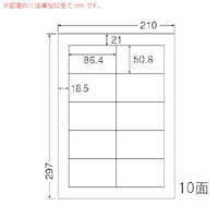 シートサイズ:210mm×297mm | ラベルサイズ:86.4mm×50.8mm | 面付:横2×縦5=10面 | 対応プリンタ (糊タイプ):カラ…