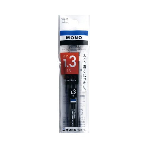 1.3mm太芯で、速く、濃くはっきりと書けるシャープペンシル「モノワーク」専用シャープ芯。消字性にも優れたタフな太芯は、マークシート試験やメモ・アイデアを書き留めるのに活躍します。 |